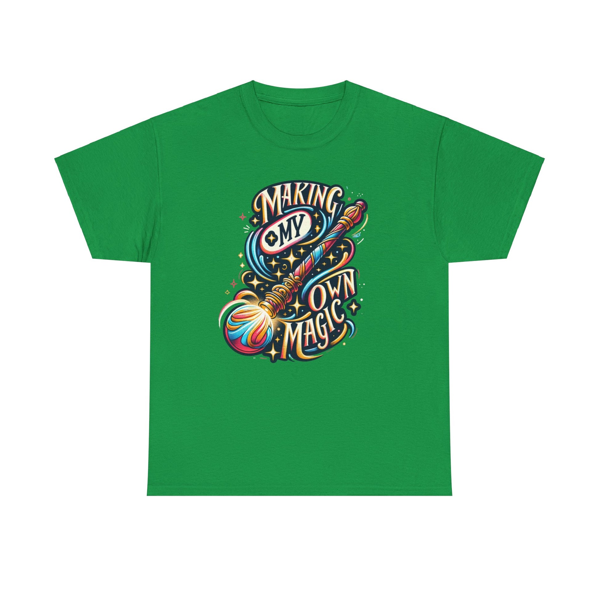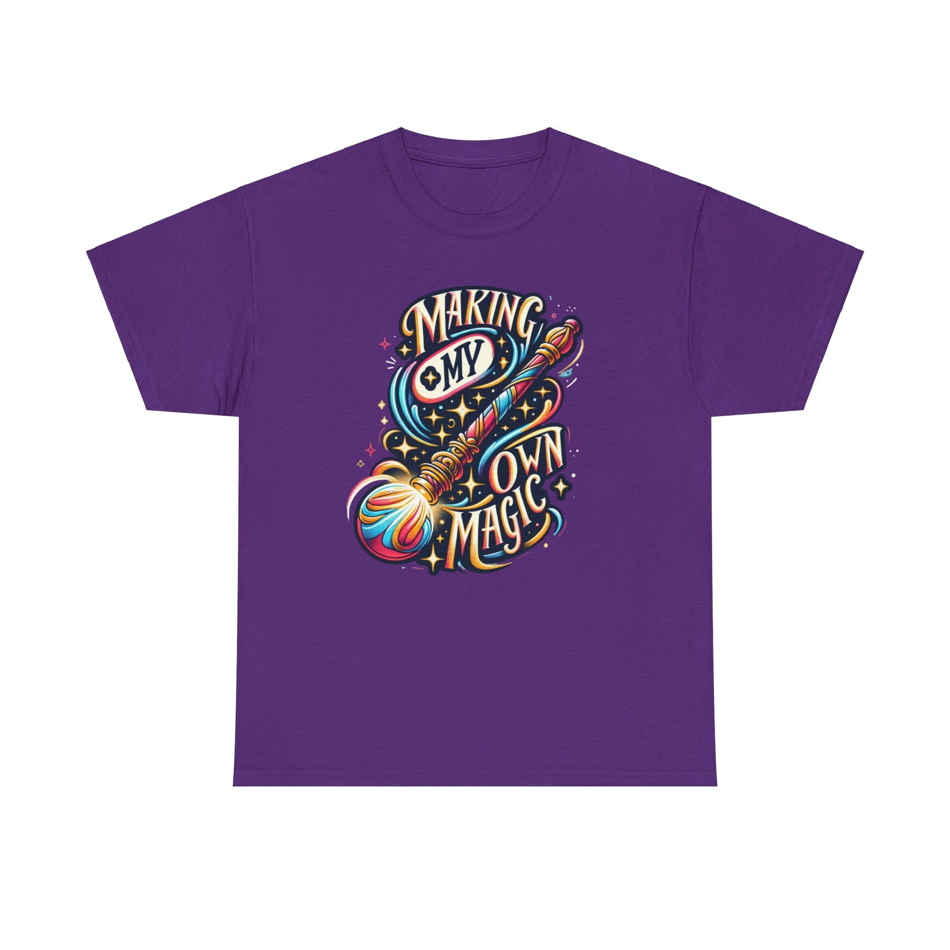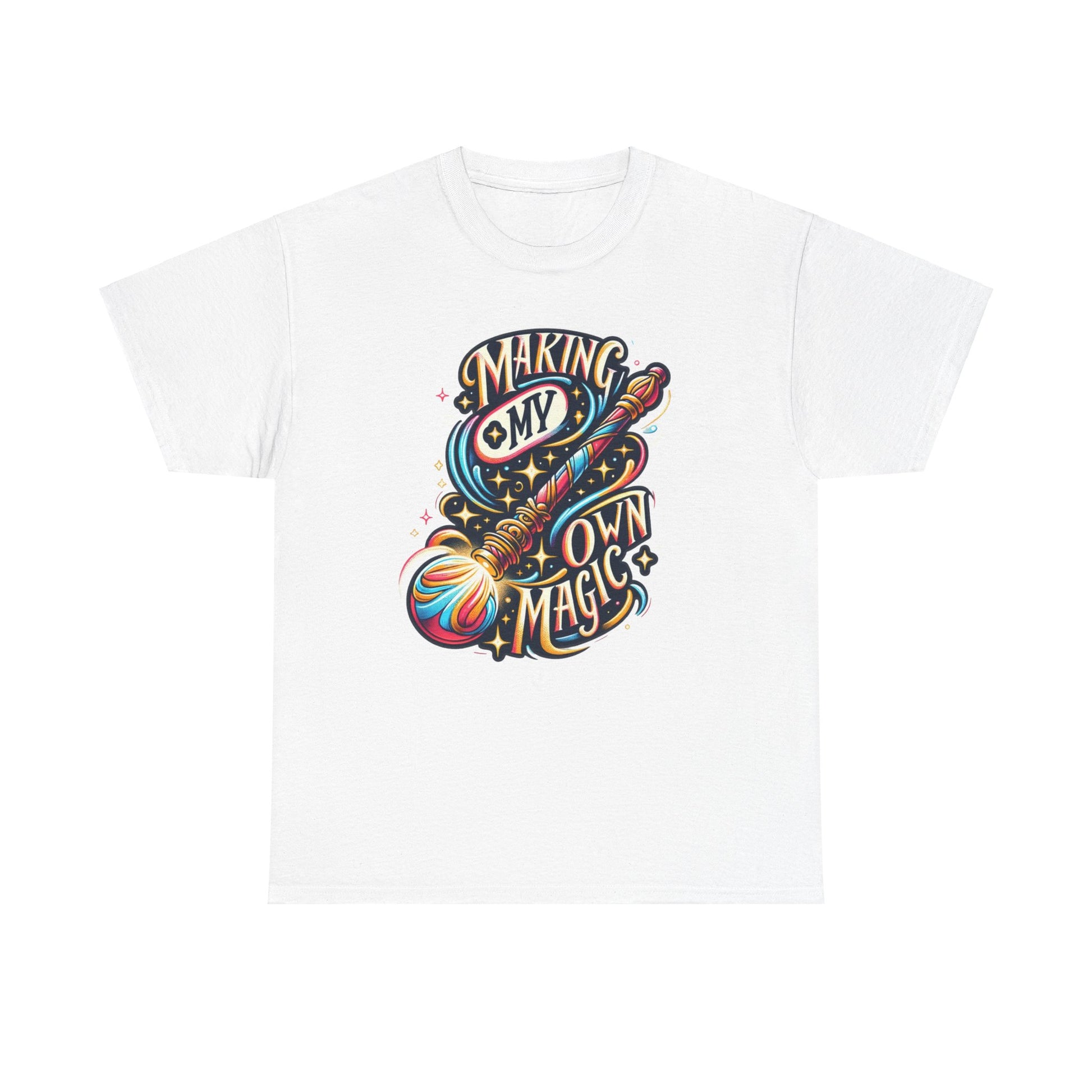 Step into a world of wonder and whimsy with our "Making My Own Magic" Shirt. Whether you're a fan of fantasy, pop culture, or simply believe in the magic of imagination, this shirt invites you to tap into your inner sorcerer and create your own enchanting adventures. The illustration of a magical wand casting a spell, accompanied by shimmering sparkles, captures the essence of mysticism and wonder, making this shirt a spellbinding choice for any magic enthusiast.
