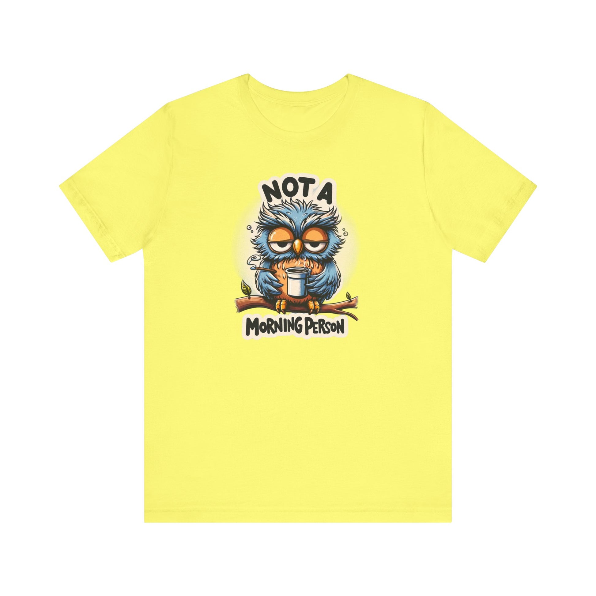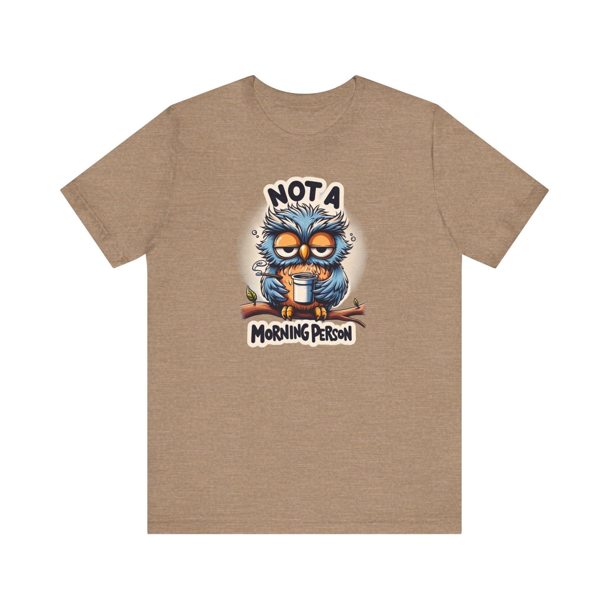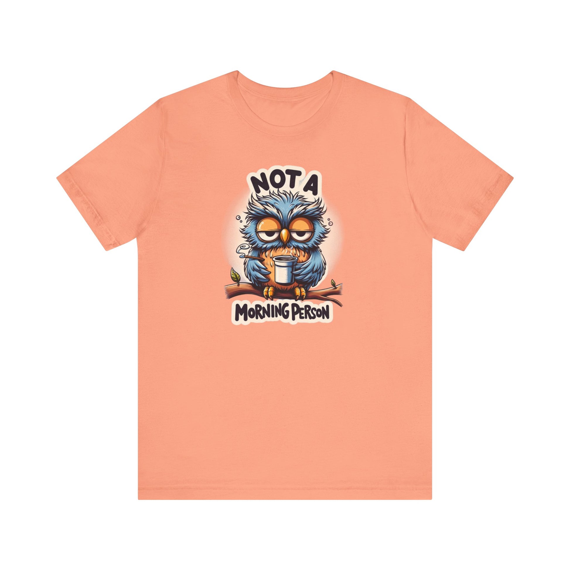 Welcome to our gift store, where we specialize in unique and memorable gifts that are sure to bring a smile to your face. If you're not a morning person or know someone who isn't, our "Not a Morning Person" shirt is the perfect addition to any wardrobe. Featuring a humorous cartoon of a sleepy owl clutching a coffee cup, this shirt is sure to resonate with anyone who struggles to rise and shine in the early hours.