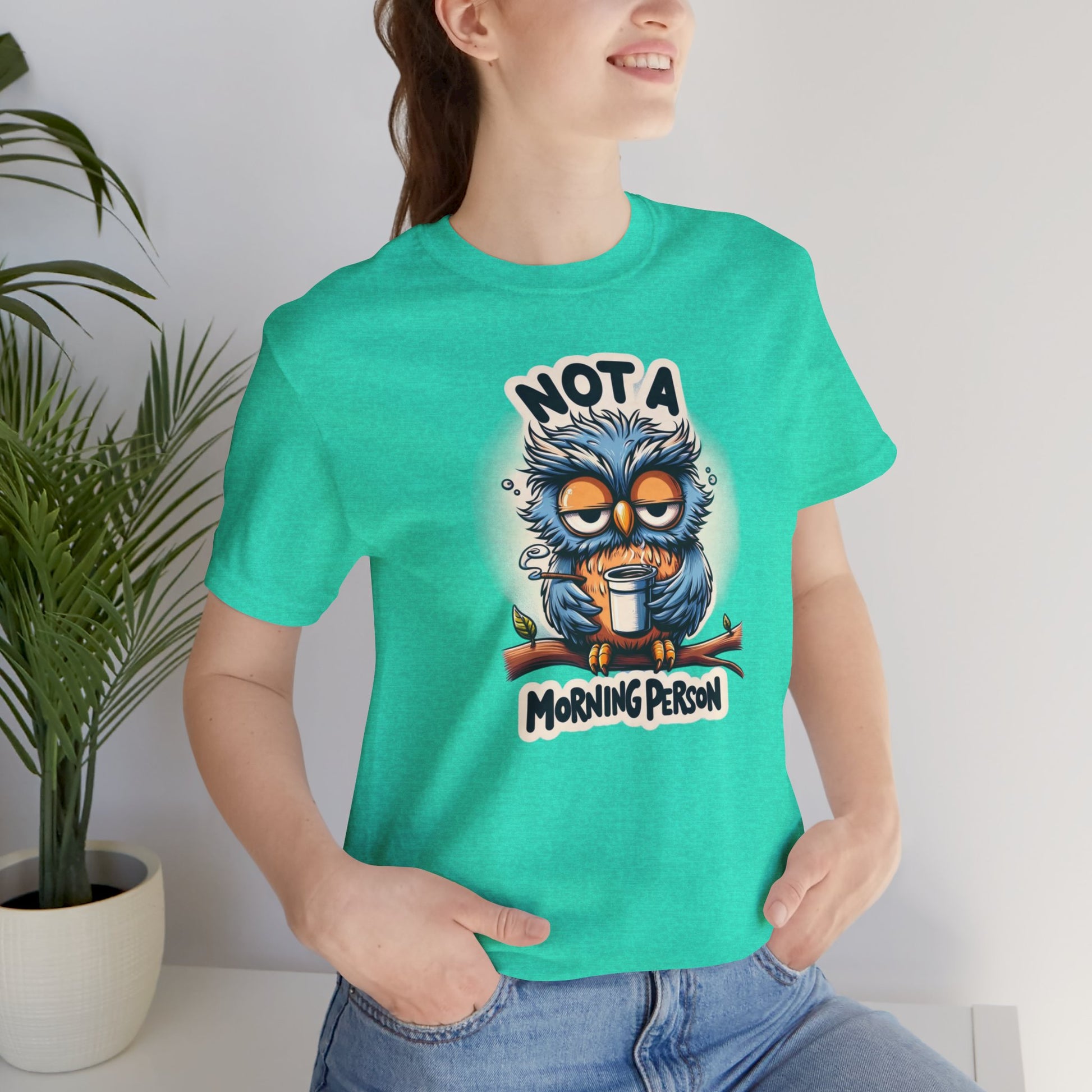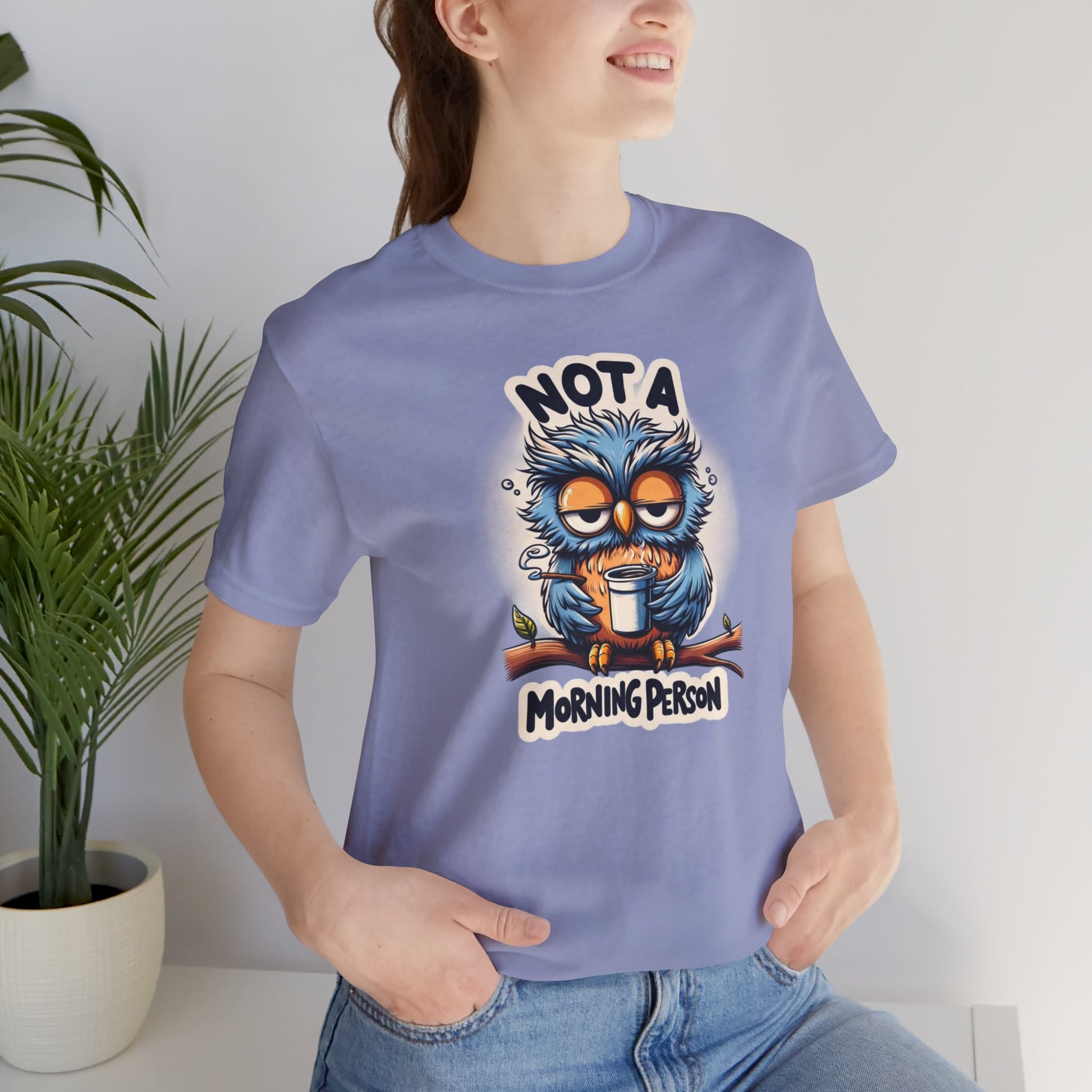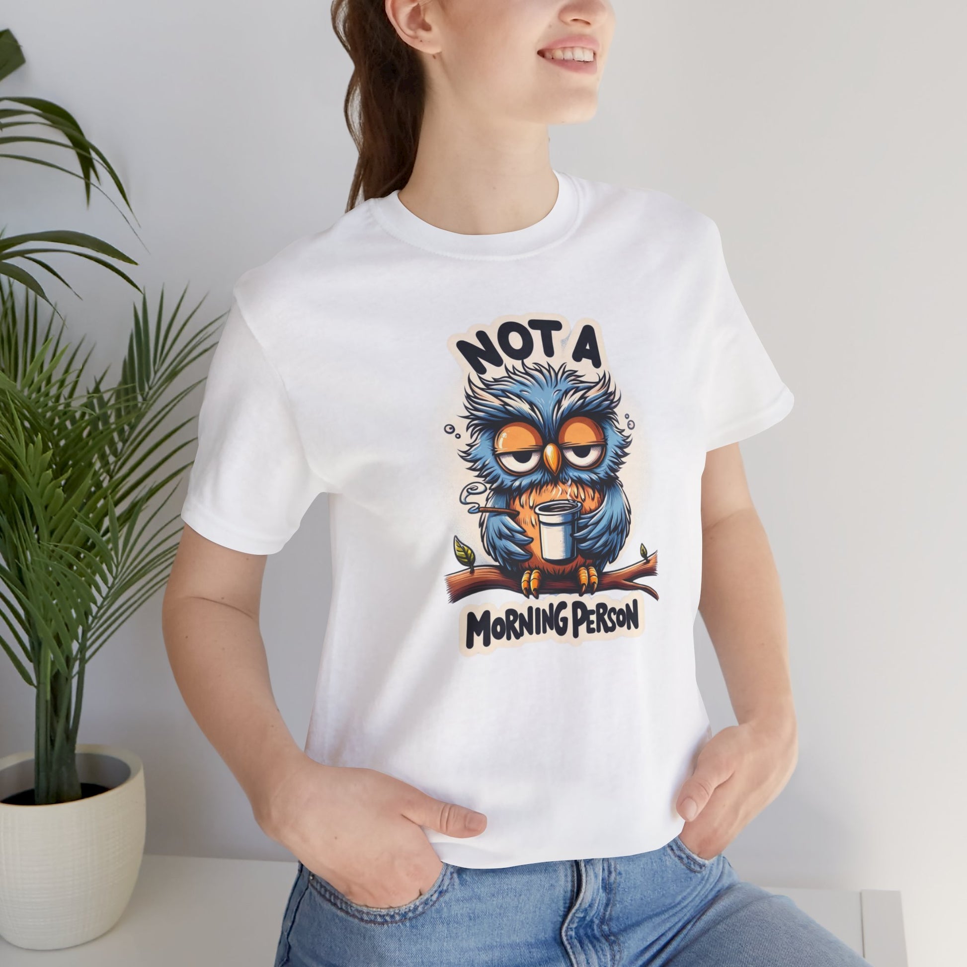 For those who prefer burning the midnight oil over greeting the dawn, our "Not a Morning Person" shirt is a badge of honor. With its charming cartoon owl and bold declaration of nocturnal allegiance, this shirt is a playful way to celebrate the joys of staying up late and sleeping in. Whether you're a night owl yourself or know someone who is, this shirt is sure to be a hit.