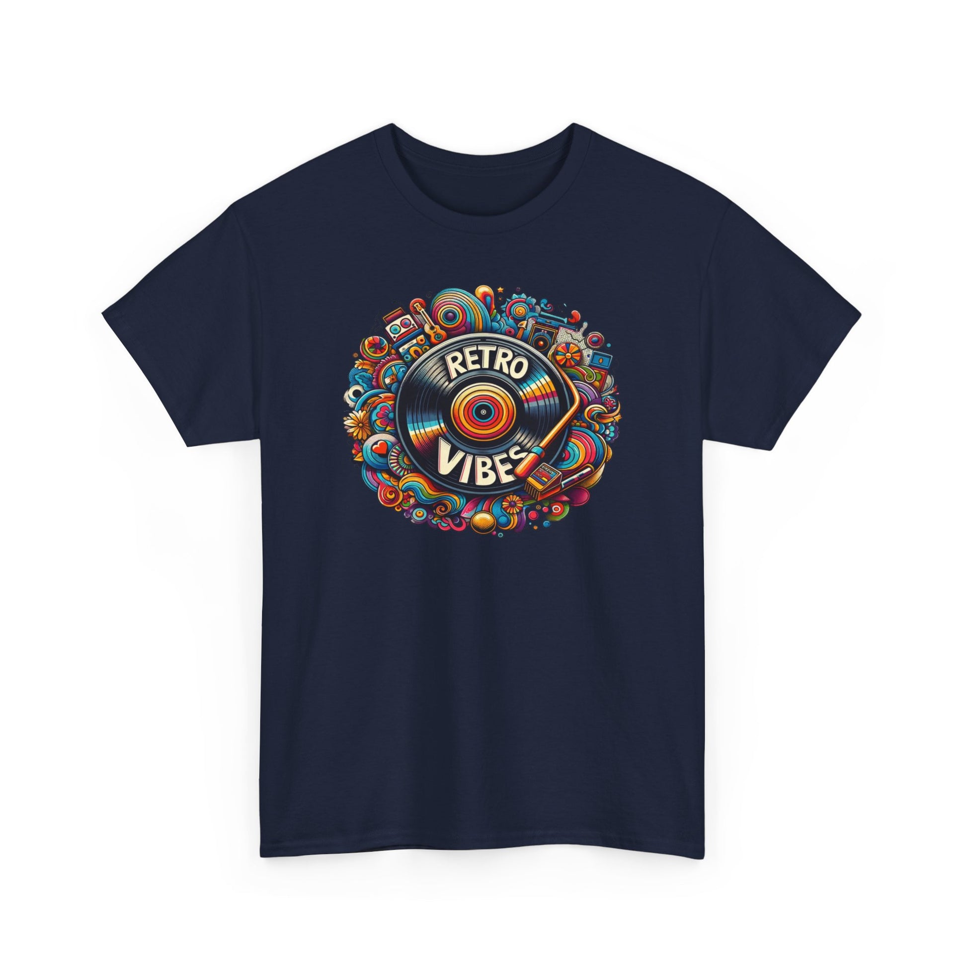 Transport yourself to the groovy era of the 70s with our Retro Vinyl Record Design Shirt. Whether you're a music lover, a fan of retro fashion, or simply appreciate the nostalgia of bygone decades, this shirt captures the essence of a time when vinyl records ruled the airwaves and disco reigned supreme. The vibrant colors and funky font of the "Retro Vibes" title evoke the spirit of the disco era, making this shirt a must-have for any retro enthusiast.