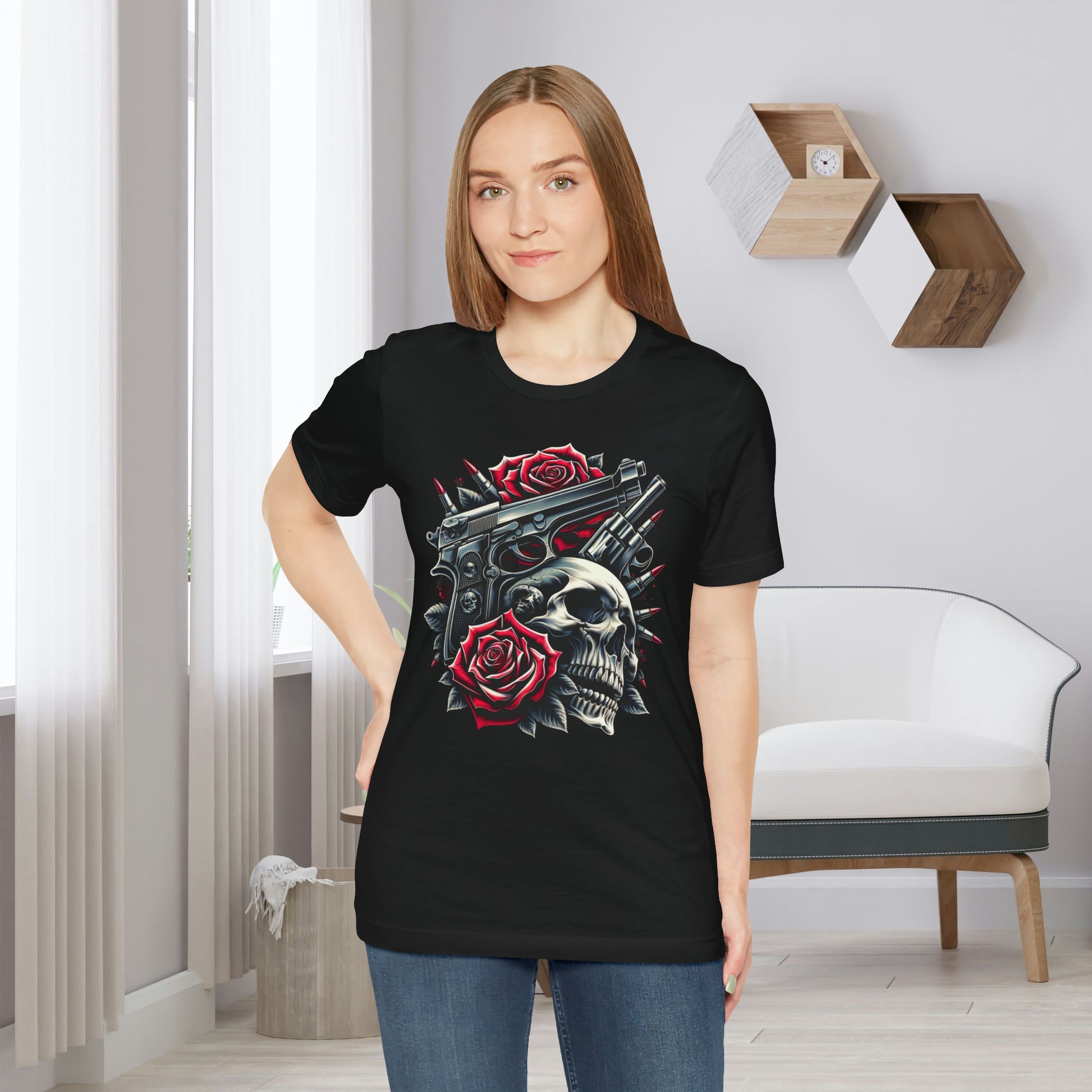 Unleash your inner rebel with our Skulls, Guns, and Roses Shirt, a daring blend of grit and glamour. Crafted with bold design and premium quality, this shirt is perfect for those who march to the beat of their own drum. Whether you're hitting the concert scene, cruising the streets, or simply making a statement, our Skulls, Guns, and Roses Shirt exudes confidence and attitude. With its edgy motif and comfortable fabric, it's the ultimate expression of rebellion and style.